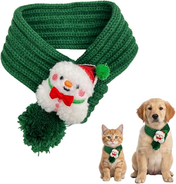 ニット素材の軽いマフラーで、首に通すだけで使えるシンプルな構造です。頭を覆わないため違和感が少なく、帽子を苦手とする猫でも取り入れやすい点が特徴です。雪だるの飾りが施されており、短時間の記念撮影にも使いやすい仕様です。